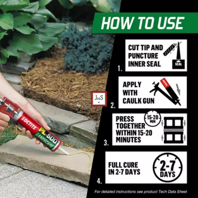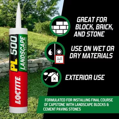 • LOCTITE® PL 500 Landscape Block Adhesive is a high-strength, weather-resistant adhesive designed for bonding landscape blocks, stone, and masonry elements in outdoor applications.