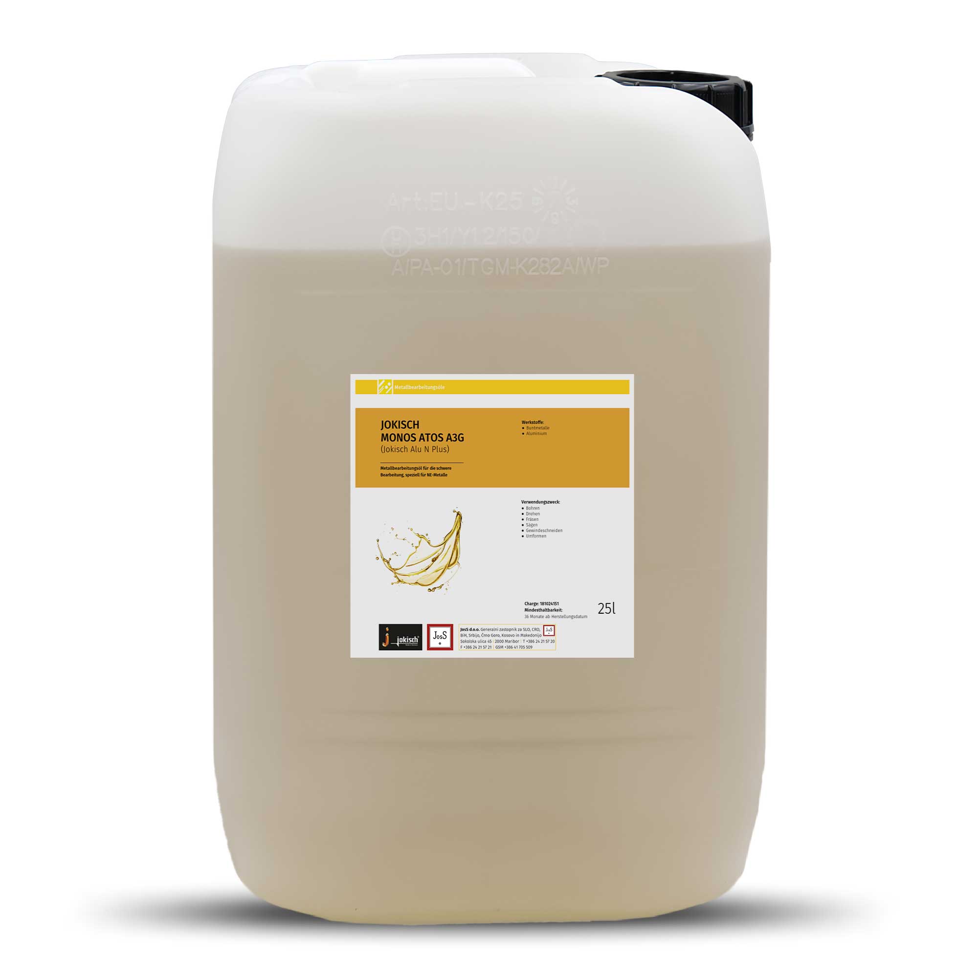 Jokisch Monos Atos A3G is a non-water-miscible specialty lubricant for medium-duty stamping and forming operations on thin sheets. It is highly effective on light metal, steel, and non-ferrous metal sheets, including galvanized steel. Application is done using felt rollers or spray systems in enclosed machines with proper extraction.